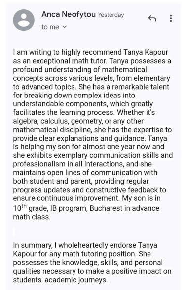 I'm offering 𝐩𝐞𝐫𝐬𝐨𝐧𝐚𝐥𝐢𝐳𝐞𝐝, 𝐨𝐧𝐞-𝐨𝐧-𝐨𝐧𝐞 𝐨𝐧𝐥𝐢𝐧𝐞 𝐌𝐚𝐭𝐡 𝐜𝐥𝐚𝐬𝐬𝐞𝐬 over Google Meet. My sessions are 𝐡𝐢𝐠𝐡𝐥𝐲 𝐢𝐧𝐭𝐞𝐫𝐚𝐜𝐭𝐢𝐯𝐞 and designed to cater to students of all ages.