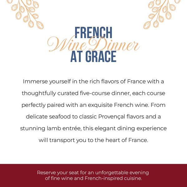 From delicate seafood to classic Provençal flavors and a stunning lamb entrée, this elegant dining experience will transport you to the heart of France.