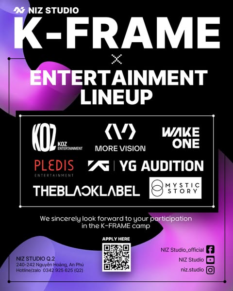 Tiếp nối thành công rực rỡ của mùa hè 2024, K-FRAME 2025 chính thức quay trở lại với quy mô lớn hơn, hoạt động đa dạng hơn, cùng với sự hợp tác từ các công ty Giải trí hàng đầu tại Hàn Quốc: YG Entertainment, THEBLACKLABEL, WAKEONE, PLEDIS, KOZ Entertainment, MORE VISION, MYSTIC STORY và hơn thế nữa.
