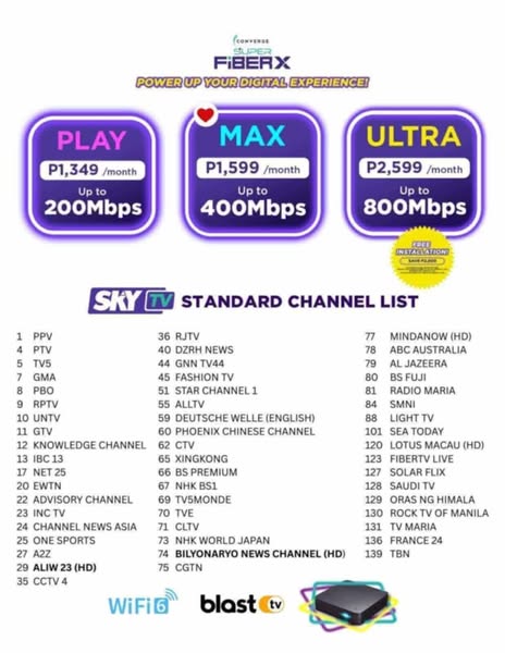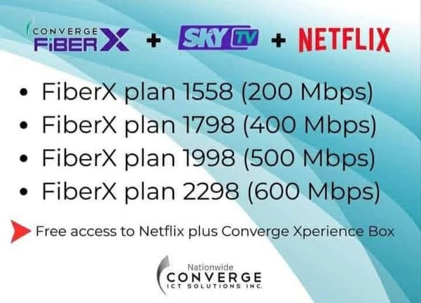 搜索关键词 Converge Fiber, Unlimited Internet, Fast Internet, Philippines Internet, Netflix Bundle, Sky TV, Internet Plans, Affordable Internet, Pampanga Internet, Fiber Internet Plans优势 Free Installation,No upfront payment (Kabit Muna Bago Bayad),Unlimited Internet,Variety of Plans (speed and bundled services),Fast Processing (1 day)