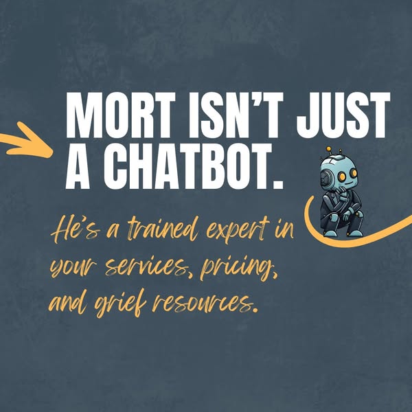 Meet Ask Mort – your funeral home’s newest team member. 🤖💙 He’s not just a chatbot; he’s a trained expert in your services, pricing, and grief resources, learning directly from your website, reviews, and more.