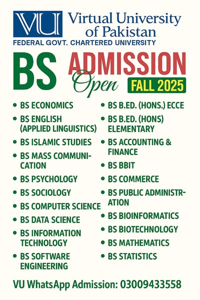 🌏“ Unlock Your Future with” #Virtual University of Pakistan! #Fall 2025 Admissions Open Now!!