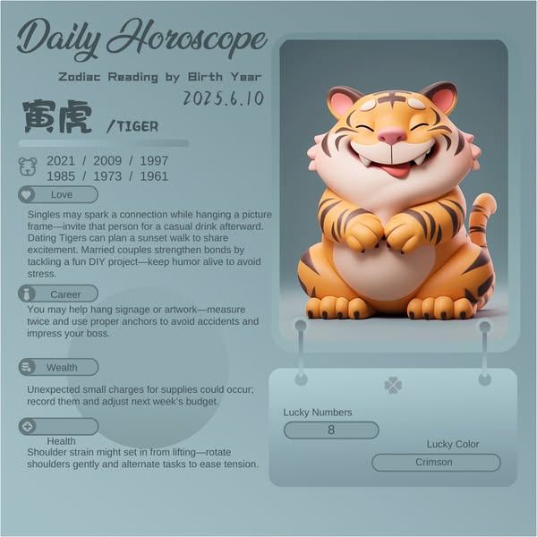 搜索关键词 Daily horoscope, astrology reading, love tips, wealth advice, health astrology, Fengshui tips, Taoist Fengshui, chinese astrology, lucky day, astrology signs优势 Daily insights,Love, work, wealth, and health tips,Easy to access