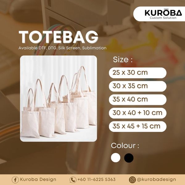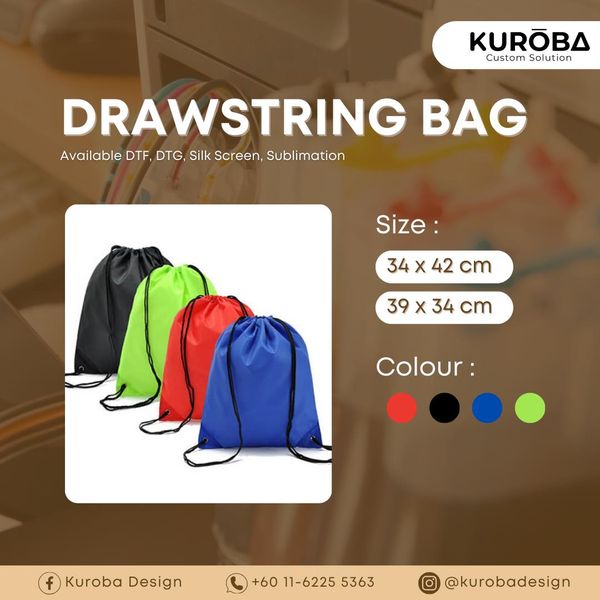 搜索关键词 custom tote bags, printing malaysia, brand promotion, low moq, free design, drawstring bags, pouch bag, corporate gifts, event merchandise, personalized bags优势 Free design services,Low minimum order quantity (MOQ),Various customization options (transfer paper, DTF, silkscreen, embroidery),Free postage for large orders,Wide range of sizes available