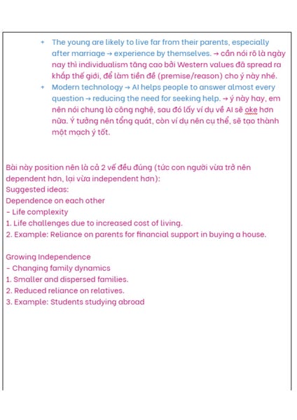 ⚡Và “Idea” và “Example” là hai thứ hoàn toàn khác nhau. Nhưng rất nhiều bạn bị rối. Mình thường giúp các bạn trình bày theo ý tưởng một cách hệ thống - tránh rơi vào tình trạng liệt kê hoặc lặp lại ví dụ mà không có ý chính rõ ràng.