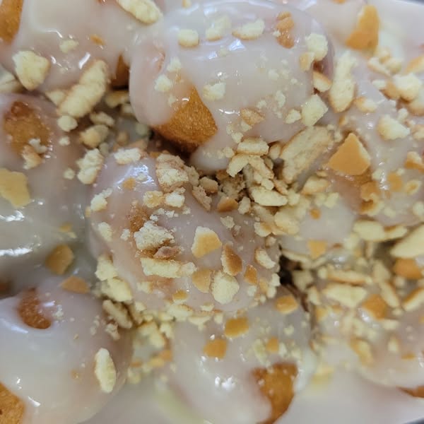 Choose from...cinnamon sugar, powdered sugar, caramel, chocolate drizzle, white icing, blueberry drizzle, lemon drizzle, maple, strawberry drizzle, raspberry, chocolate Bavarian cream, key lime, peach with crumb topping and banana pudding with NILLA crumb topping so many more!