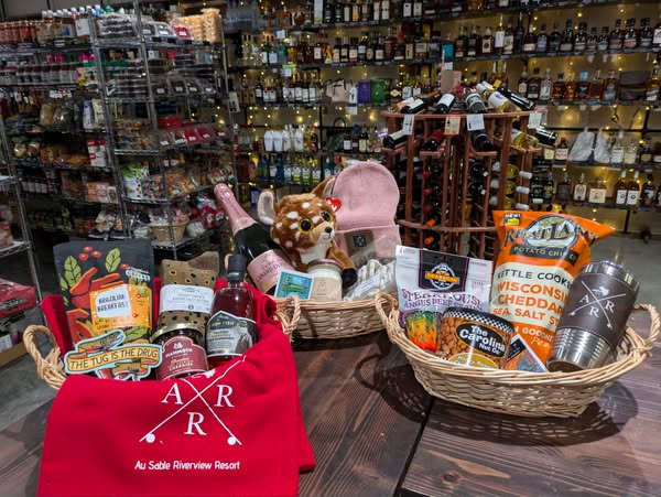 With the holidays right around the corner, now is the time to stop into the Au Sable Riverview Market and let us help you put together a unique and awesome gift basket! Pick from our extensive collection of gourmet snacks, candies, beverages, apparel, mugs/glassware, candles, soaps, stickers, fly fishing gear and much more. Prices vary depending on what you want in the basket.