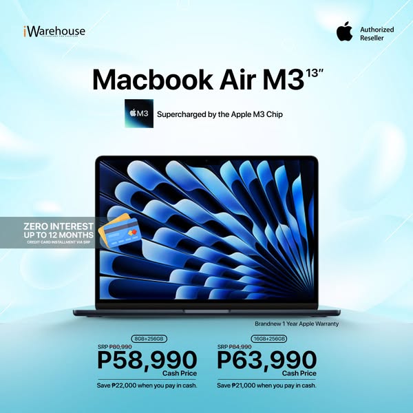搜索关键词 Apple MacBook Sale, MacBook Air Discount, Laptop Philippines, iWarehouse Gadgets, Zero Interest Installment, Computer Sale Bacolod, Apple Warranty, MacBook M4, MacBook M3, MacBook M2优势 Significant price discounts,Zero interest installment plans,Brand new with 1-year Apple warranty,Multiple payment options