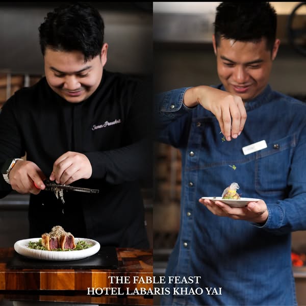 搜索关键词 Khao Yai fine dining, Luxury dining experience, Sustainable cuisine Thailand, Art and dining event, Hotel Labaris Khao Yai, 7 Wonders Khao Yai, Michelin star chef, Wine pairing dinner, Exclusive dinner package, Thailand tourism优势 Unique 6-course menu inspired by Khao Yai,Collaboration of experienced chefs,Wine pairing option,Local ingredients and sustainable concept,Art exhibition and live watercolor painting,Charity auction,Hotel package available
