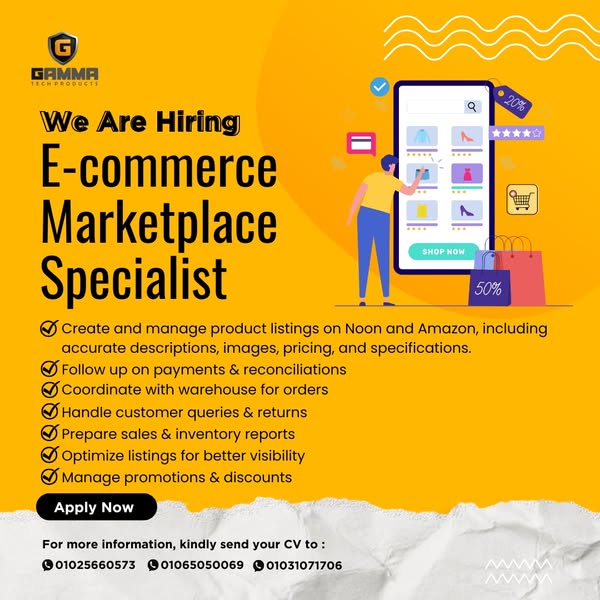 إدارة المنتجات على منصات التجارة الإلكترونية (نون، أمازون)، بما يشمل رفع المنتجات، متابعة المخزون، والتحصيل وإعداد التقارير الدورية.