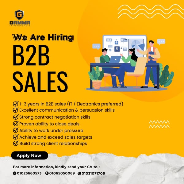 搜索关键词 Job vacancies Egypt, Gama Tech careers, Graphic Designer Jobs, B2B Sales Jobs, E-commerce Specialist Jobs, Online Sales Moderator, Technology jobs, careers in Cairo, recruitment优势 Opportunities for experienced professionals,Positions available in a growing company,Various roles within the technology sector