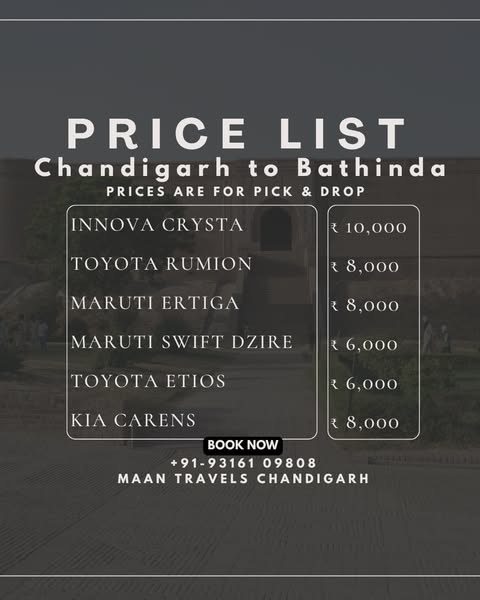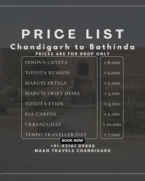 搜索关键词 Chandigarh Bathinda cab, affordable cab service, outstation cab, taxi service, intercity travel, reliable transportation, cheap cab, book a cab, online cab booking, airport transfer优势 Affordable price,Direct route