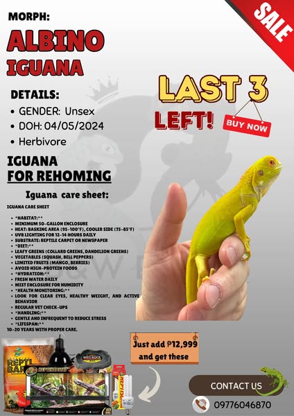 From the striking Albino Iggies to the stunning King Snakes and majestic Tortoises, this is your chance to bring home a rare companion — at an unbeatable price.