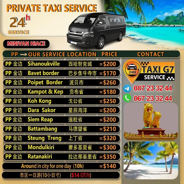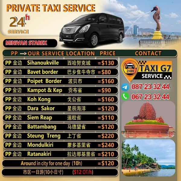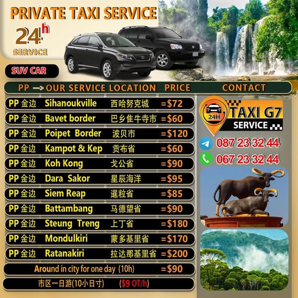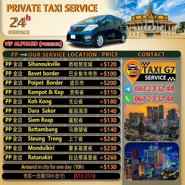 #Taxig7 #TaxiG7 #Taxi service #bookings #book taxi #Taxi cambodia #taxionline #Taxi private #taxi #taxidriver #Taxi phnom penh #taxiairport #firsttaxi #fasttaxi #EasyTaxi #Taxi25 #Taxi sihanoukville #Graptaxi #PASSAPP #move #taxi24h #ordertaxi #needtaxi #privatetaxi #ClassicTaxi #suvtaxi #taxivip #taxicab #taxivietnam #taxichines