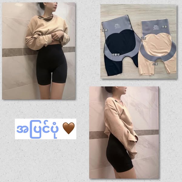 Body shaper ဝတ်ရင်တင်ပြားတာမျိုးလဲမဖြစ်ဘူး တင်နေရာမှာ shape လေး ဖော်ထားလို့ တင်ပါးက ဝတ်လိုက်ရင် လုံးလုံးလေး ဖြစ်သွားတာလေးက အသက် 🤭