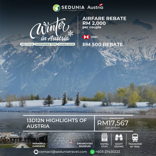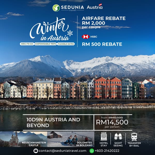 搜索关键词 airfare rebate, hsbc promotion, couple travel, travel deals, malaysia travel, flight discount, rm1000 rebate, cheap flights, holiday packages, travel promotion优势 RM1,000 rebate per couple,Additional RM500 rebate with HSBC