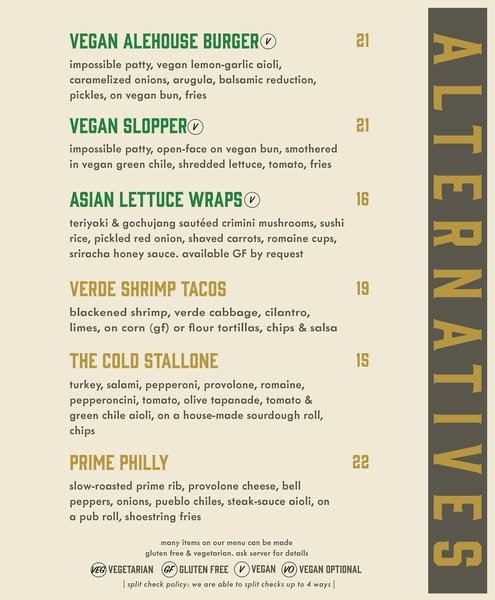 搜索关键词 Alehouse Spring Menu, Restaurant Food, Restaurant Beer, local brewery, Brues Alehouse food, Brues Alehouse beer, spring food menu, memory with beer, new food优势 New seasonal menu,Wide selection of beers,Social atmosphere