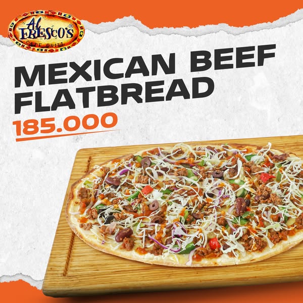 🍕 𝐌𝐄𝐗𝐈𝐂𝐀𝐍 𝐁𝐄𝐄𝐅 𝐅𝐋𝐀𝐓𝐁𝐑𝐄𝐀𝐃: Mang đậm hương vị ẩm thực Mê-hi-cô với phần thịt bò hầm cay nồng, hứa hẹn sẽ mang đến bạn một món ăn đặc sắc