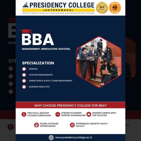搜索关键词 BBA Degree, Finance Marketing HR, Presidency College, Bangalore Education, Business Oriented, Bachelor Degree, Higher Education, Best BBA, College Admission优势 BBA Degree in Finance,BBA Degree in Marketing,BBA Degree in HR,Business Oriented Knowledge
