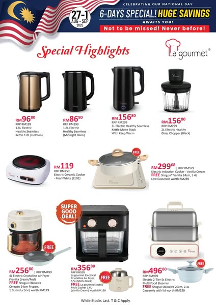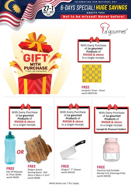 搜索关键词 kitchenware sale, biggest sale, discount kitchenware, kitchen shops sabah, kitchen shops sarawak, La gourmet, Suria Sabah, Imago Shopping Mall, City Mall KK, Miri Times Square优势 Massive savings,Unbeatable deals,Storewide discount up to 68%,Multiple store locations