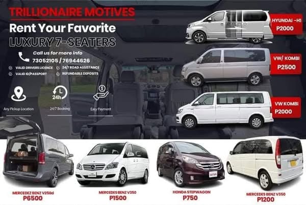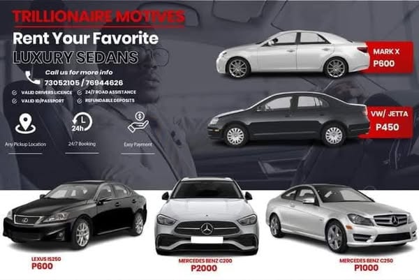 搜索关键词 Trillo Rentals, car rental Botswana, Gaborone car hire, affordable car rental, 24/7 car service, travel in style, weekend getaway, business trip rental, luxurious sedans, hassle free rentals优势 Convenient booking,Affordable rates,24/7 customer support,Hassle-free rentals