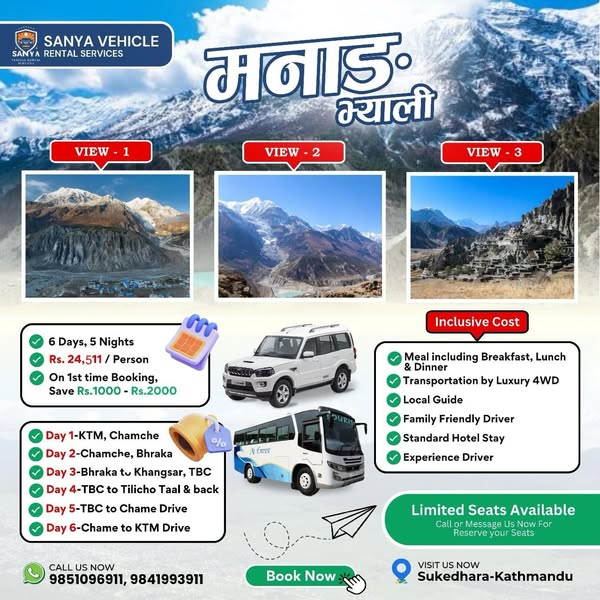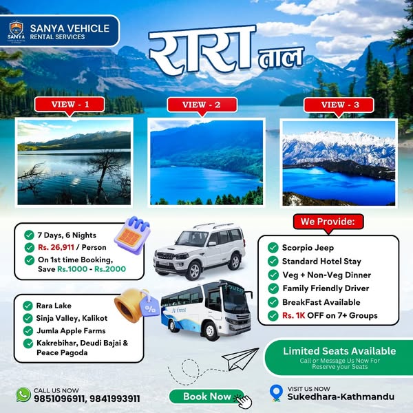 #TravelNepal #SanyaVehicleRentalService #YatraSajiloBanaunus #TourPackages #HolidayDestination #TravelWithUs #ExploreNepal #HotelBookingServices #CustomerService