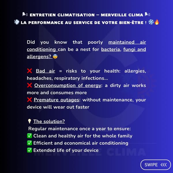 #EntretienClimatisation #AirPur #MerveilleClima #ÉconomieDEnergie #Sante #Climatisation #BienÊtre