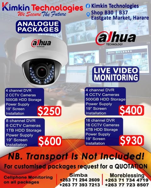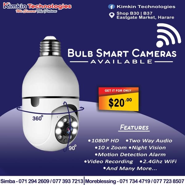 Secure your business and residential properties. We have Solar cameras, Secret cameras, Dash cameras, Bulb cameras and many more in stock. Visit our shop at B37 or B30 Eastgate Market Harare New complex opposite Eastgate Mall or opposite Ok 3rd