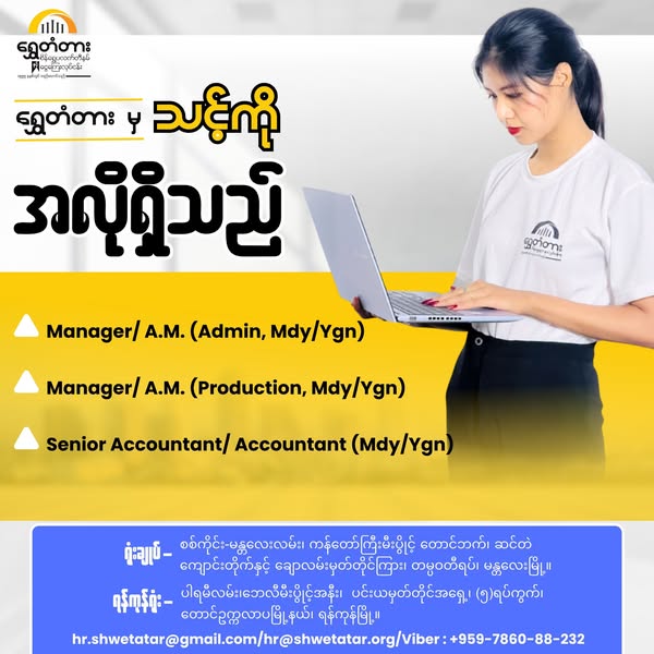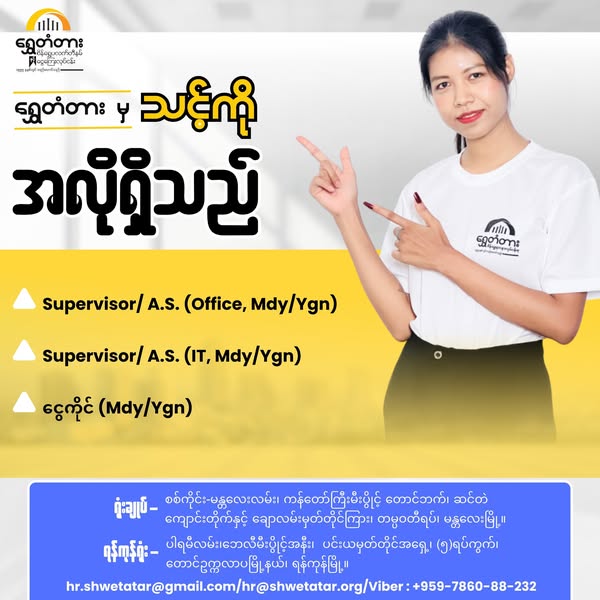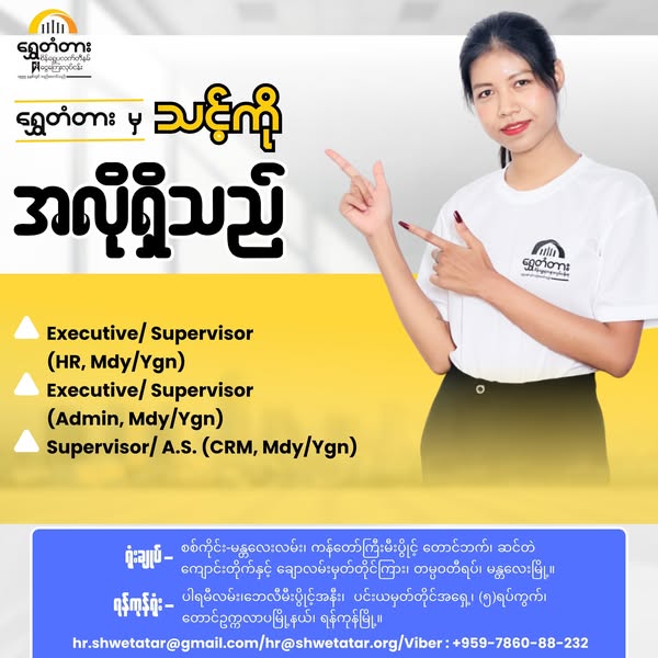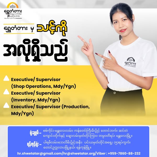 #shwetatar #goldjewellery #hiringnow #Mandalay #Yangon #Amarapura #tampawaddy #centralpoint #Diamondplaza #capital #SanYeikNyein #gamonepwint #hr #hrjobs #Admin #Executive #Supervisor #manager #senior #အလုပ် #Assistant #OfficeAssistant #opportunity #sustainability #sustainabledevelopment