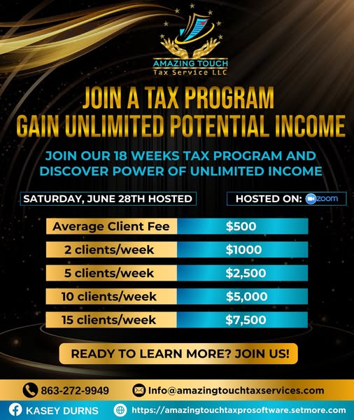 Are you ready to grow your own tax business or add extra income streams to your existing one? Amazing Touch Tax Services LLC offers powerful