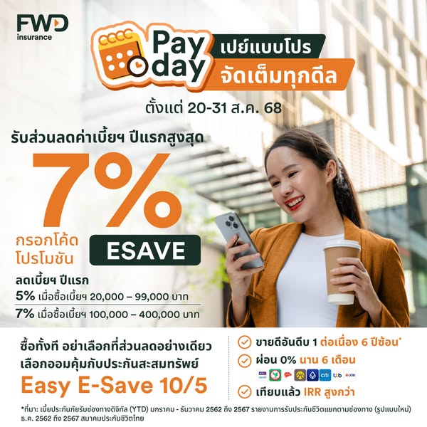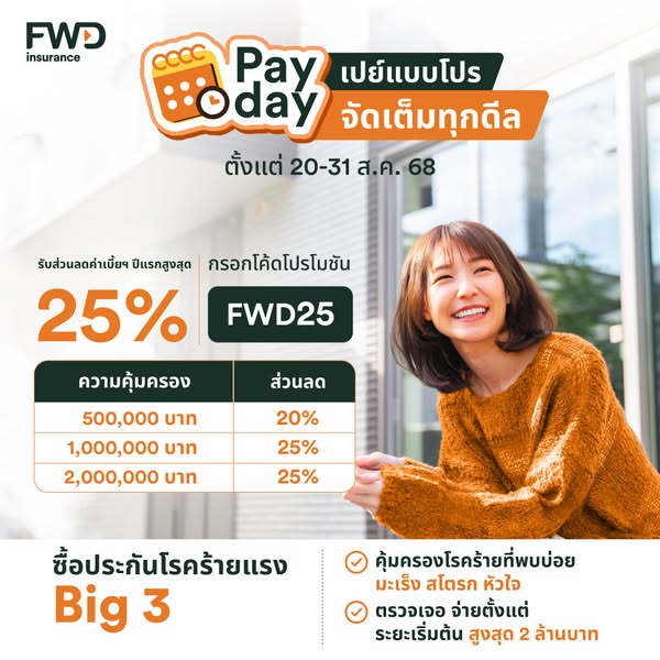 ลดค่าเบี้ยฯ ปีแรกสูงสุด 25% โค้ด FWD25