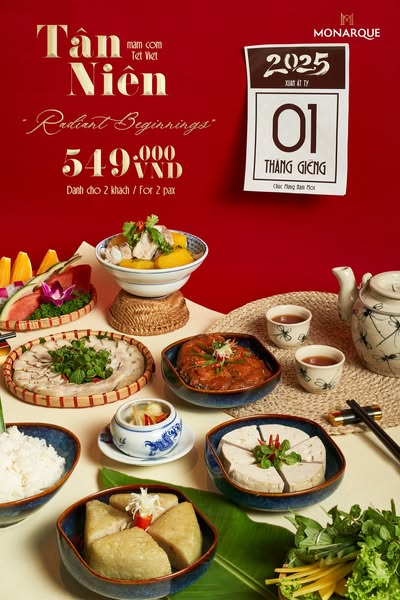 搜索关键词 Monarque Hotel, Da Nang, Tet holiday, Vietnamese cuisine, Lunar New Year, Family meal, Hotel restaurant, Spring getaway, Festive season, Tet 2025优势 Authentic Vietnamese Tet cuisine,Convenient hotel location,Festive dining atmosphere,Reasonable price