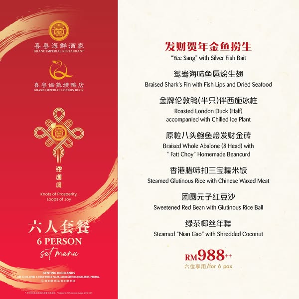 Whether you're on a family trip, a romantic getaway, or celebrating with friends, let Grand Imperial Genting Highlands make this Lunar New Year celebration an unforgettable experience.