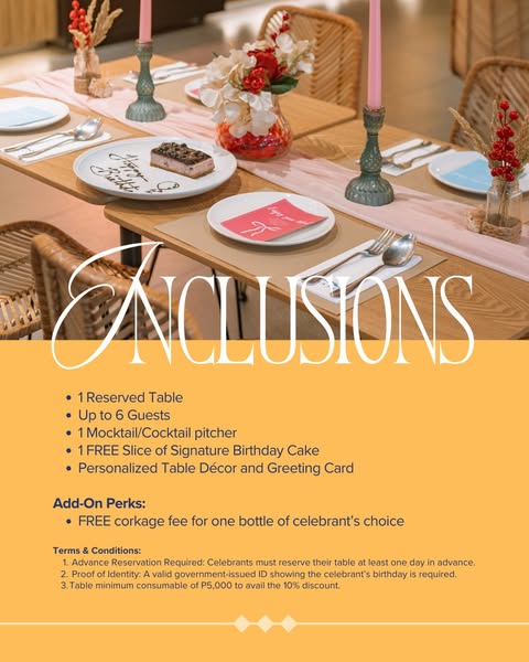 Make your birth month extra special with our Wave Birthday Package! Gather your besties, indulge in delicious food, sip on cocktails, and enjoy exclusive perks just for you. Let’s make your celebration one for the books!