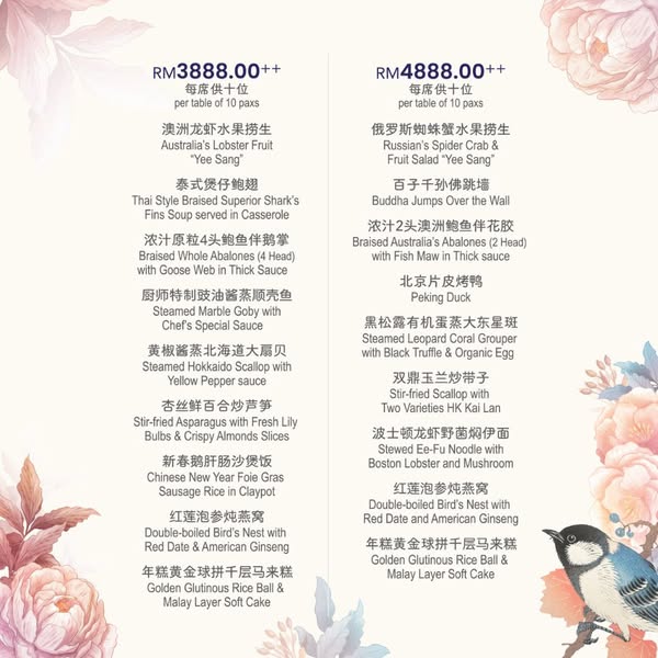 Host your company’s celebration with our 𝐏𝐨𝐫𝐤-𝐅𝐫𝐞𝐞 set menus, starting from 𝐑𝐌𝟏𝟑𝟖𝟖++ 𝐩𝐞𝐫 𝐭𝐚𝐛𝐥𝐞 𝐟𝐨𝐫 𝟏𝟎 𝐩𝐚𝐱. Each table features 𝟖 𝐞𝐱𝐪𝐮𝐢𝐬𝐢𝐭𝐞 𝐝𝐢𝐬𝐡𝐞𝐬, crafted to perfection to ensure a feast that impresses everyone.