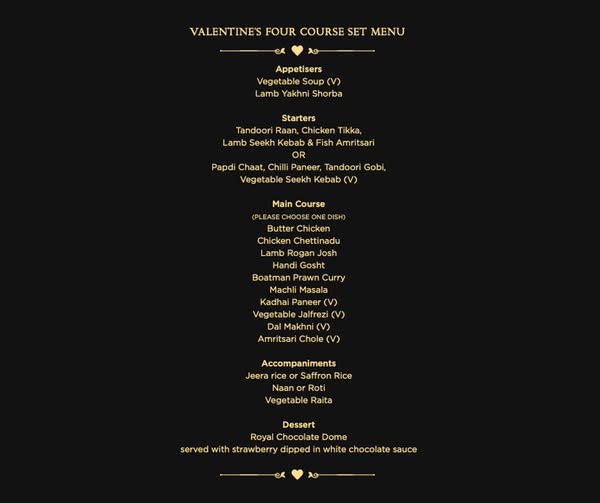 You can also take a glance this year's decadent Valentine's Four Course Set Menu, featuring a selection of our most exquisite dishes our Chilli Paneer and Lamb Seekh Kebab to our Fish Amritsari and Chicken Chettinadu. Rest assured that there are plenty of options for our vegetarian and vegan diners. 🌱