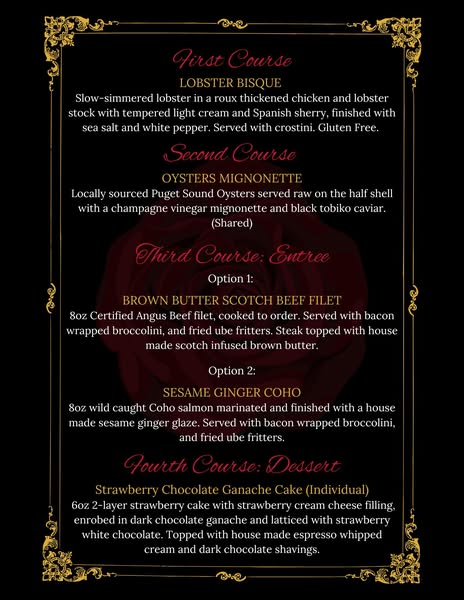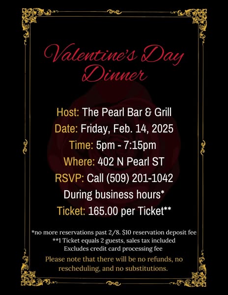 Valentine's Day Dinner tickets Available now! Call and make a reservation before it's too late.