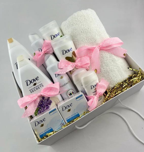 Spoil her with a curated bundle of joy: a radiant dove body spray, dazzling earrings, and an assortment of delightful treasures. Perfect for pampering the woman who does it all!