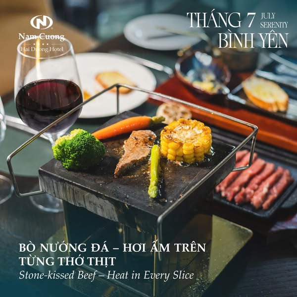 搜索关键词 Nam Cuong Hai Duong, July Serenity, Hotel Deals, Vietnam Hotel, Stone Grilled Beef, XO Shrimp, Hai Duong Hotel, Garden View Restaurant, Palm 2 Bar, Summer Vacation优势 Discounts on dining for hotel guests,Special dishes like Stone Grilled Beef and XO Sauce Fried Shrimp,Happy hour discounts on drinks with complimentary snacks,Offers a luxurious and peaceful vacation