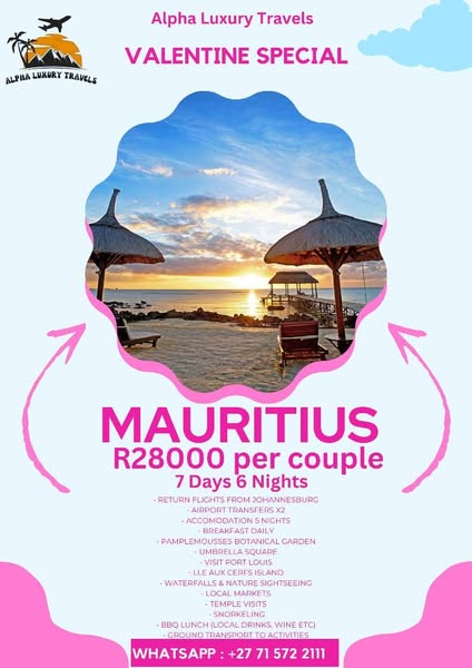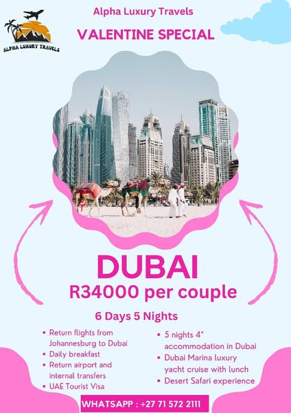 搜索关键词 Valentine's getaway, romantic trip, travel special, South Africa travel, couple vacation, holiday package, special travel offer, adventure travel, family adventure travel, Valentine's Day packages优势 Romantic experience,Special offer for Valentine's Day,Easy to inquire via WhatsApp/Call