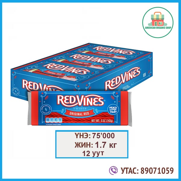 - Red Vines Twists - Мушига хэлбэртэй резинэн чихэр