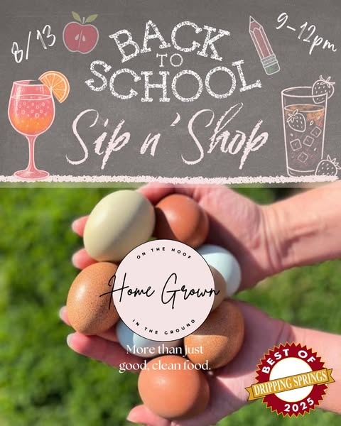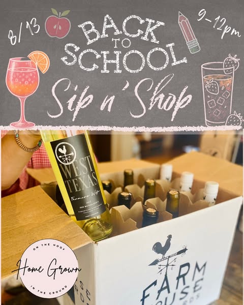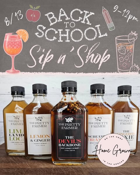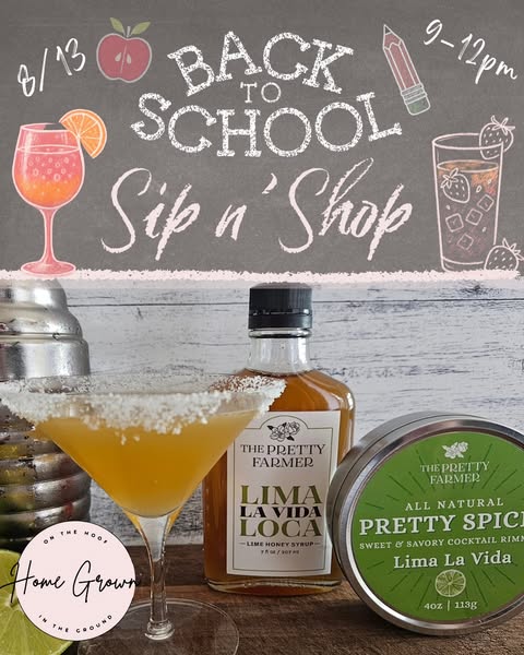 At our Sip & Shop event, enjoy complimentary wine spritzers and juice tastings while browsing local goods, farm-fresh products, so far we have: