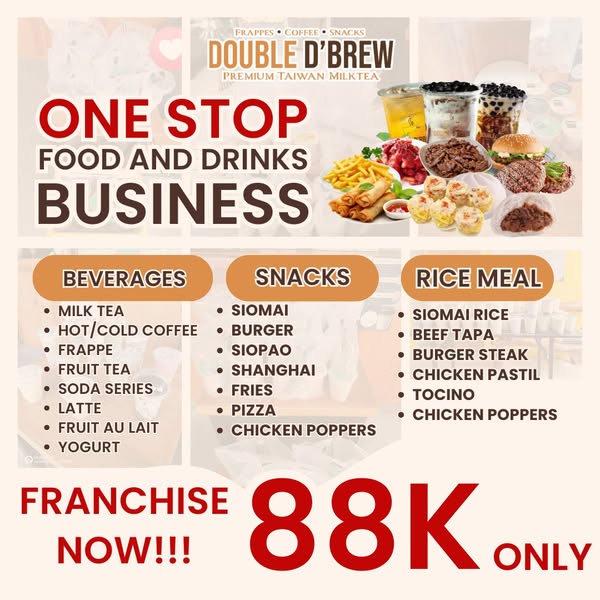 ☕ Maging Franchise Owner ng Double D’Brew – Masarap na food at drinks, patok sa lahat!