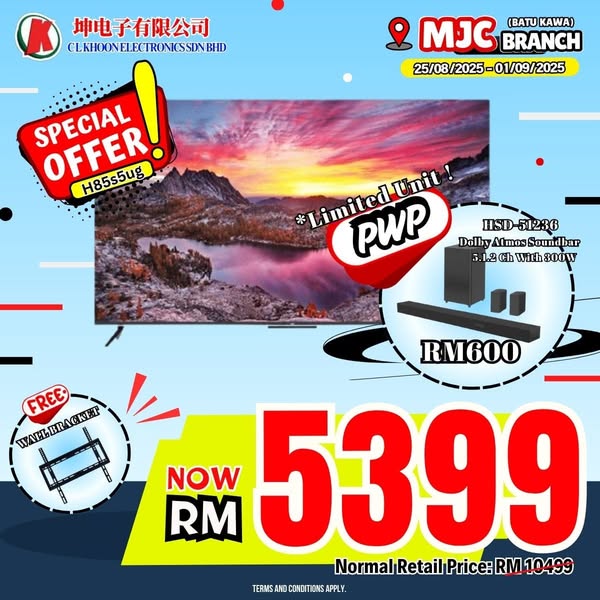 搜索关键词 electronics sale, home appliances discounts, Kuching promotion, Merdeka sale, MJC branch, Bonuslink Points, Aeon Credit Loan, Sarawak Pay, QR Pay优势 Massive discounts,Redeem Points Collect Bonuslink Points,Free Basic Installation,Free Delivery Kuching Area,Extended Warranty,After Sales Service,Easy Payment Scheme