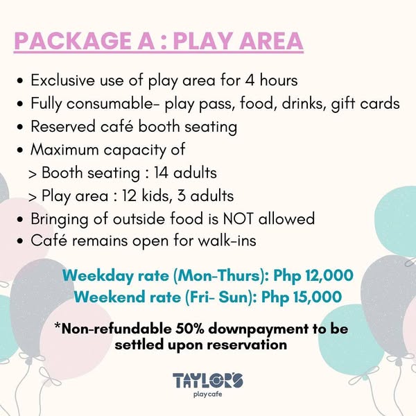 🎈 Message us to learn more about the consumable package details and start planning your special day at Taylor’s Play Cafe!