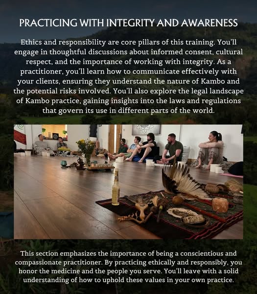 Whether you’re seeking personal renewal or stepping into the role of a Kambo practitioner, this experience will equip you with the tools and insights to walk this path with integrity and strength.