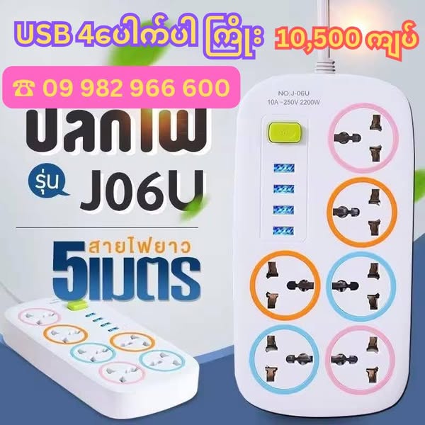 🔌⚡ USB 4 ပေါက် ပါ ကြိုး = 10,500 ကျပ် ⚡🔌