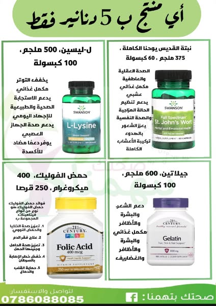 搜索关键词 Supplements, Vitamins, Health, Beauty, Collagen, Omega, Calcium, Iron, Weight Loss, Weight Gain, Apple Cider Vinegar, Centrum Adult, Spirulina, Ginseng, Vitamins for Children, Free Delivery, Cash on Delivery优势 Affordable Price (5 JD per pictured product),Free delivery for orders over 25 JD,Gift with purchase over 70 JD,Safe and effective formulas,High quality products,Guaranteed results,Cash on delivery
