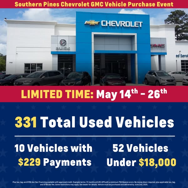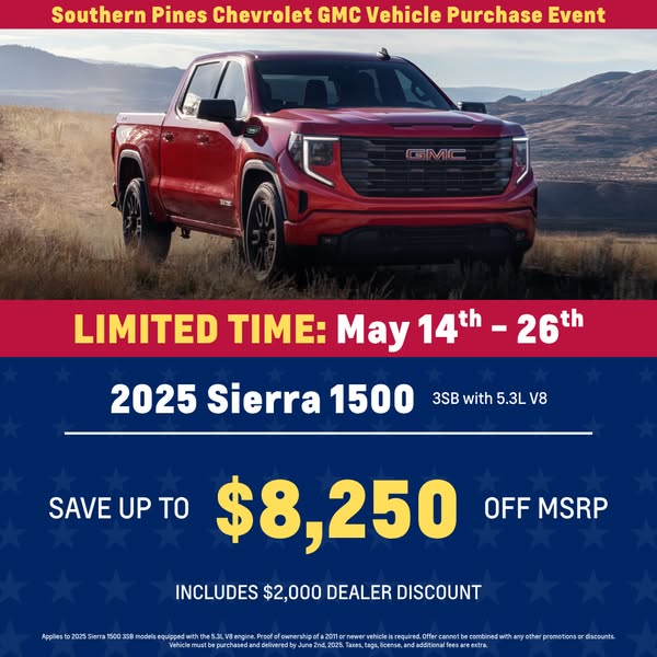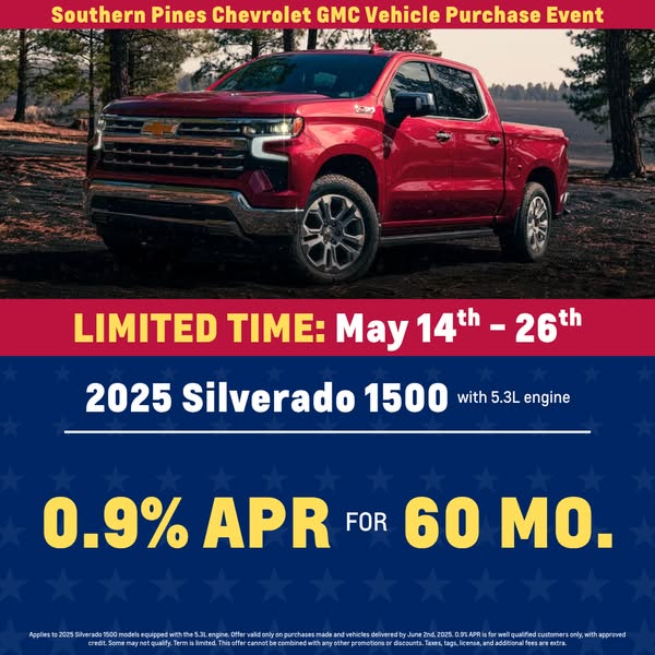 主页名字Southern Pines Chevrolet GMC Vehicle Purchase Event