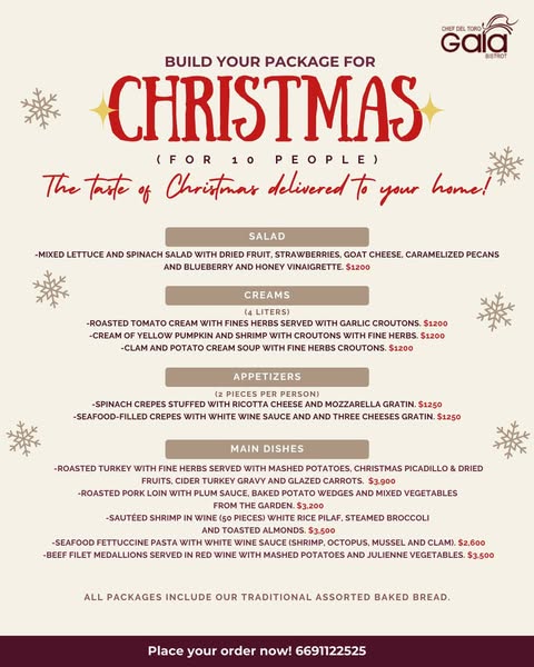 📞 Haz tu pedido ahora y asegura una cena inolvidable. ¡Celebra sin complicaciones, celebra con Gaia! 🎅❄️